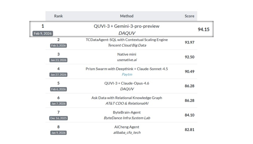 다큐브는 11일 미국 예일대 연구진이 주관하는 '스파이더 2.0(Spider 2.0)' 벤치마크의 3개 평가 트랙(DBT·Lite·Snow)에서 모두 세계 1위를 기록했다고 밝혔다. 국내 기업이 이 평가의 모든 트랙을 석권한 것은 처음이다.