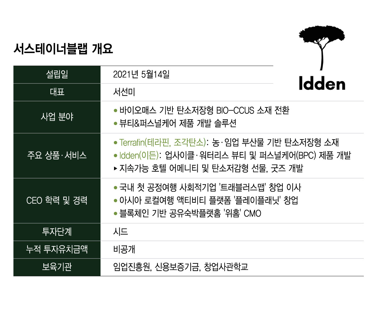 여행 스타트업 대표에서 바이오 소재 기술 기업가로 변신한 서선미 서스테이너블랩 대표의 말이다. 서스테이너블랩은 산불피해목과 농식품 부산물을 활용해 플라스틱을 대체하는 소재와 제품을 개발하는 기후테크 스타트업이다.