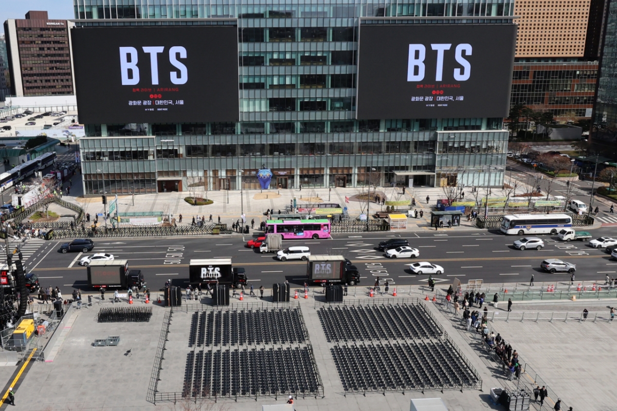 '슈퍼볼 하프타임쇼'의 거장 해미시 해밀턴 감독이 연출을 맡은 공연은 넷플릭스 사상 최초 생중계를 통해 190여개국 안방으로 실시간 송출된다. 관람구역은 광화문 앞 삼거리를 시작으로 시청역 인근까지 약 1㎞에 이른다. 광화문 일대가 사실상 하나의 거대한 무대가 되는 셈이다.