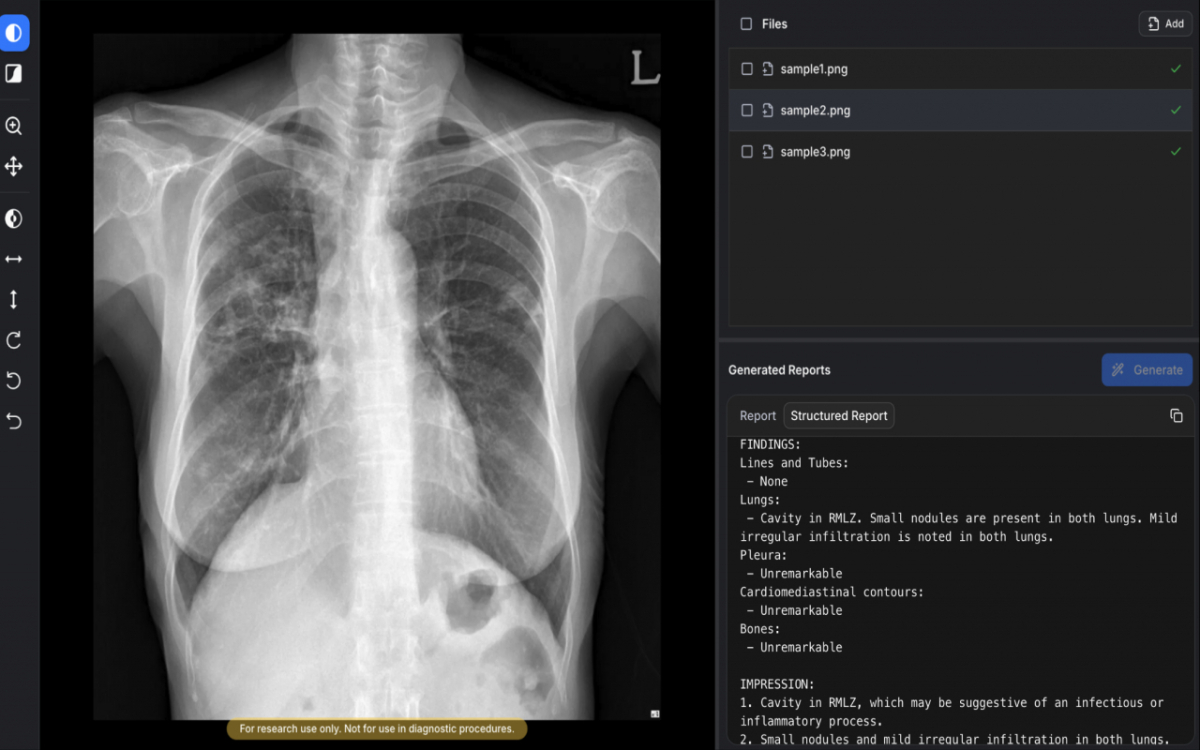 검증된 57개 소견 및 질환에 대해 높은 수준의 판독보조 성능을 제공할 뿐 아니라 이외의 다양한 영상 소견도 해석·언급할 수 있다. 임상 현장의 실제 워크플로우를 반영해 의료진이 보다 효율적으로 판독 업무를 수행할 수 있도록 설계됐다.
