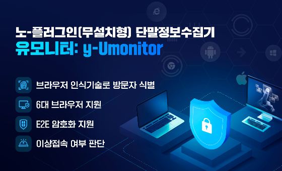 'y-Umonitor'는 별도 프로그램 설치 없이 웹 환경에서 단말 정보를 수집·분석하는 솔루션이다. 업체 측은 "금융 거래에 필요한 최소한의 단말 식별 정보를 확보할 수 있다"며 "설치형 보안 프로그램 의존도를 낮추는 동시에 개인정보 수집도 최소화해 개인정보 보호 규제에도 유연하게 대응할 수 있다"고 말했다.