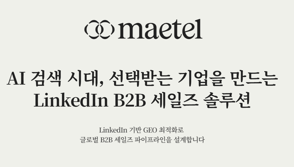 2024년 2월 설립된 메텔은 링크드인을 기반으로 GEO(Generative Engine Optimization)·AI 검색 최적화를 통해 B2B 세일즈 파이프라인을 설계해 준다. 타깃 바이어를 발굴하고 고객사에게 최적화된 세일즈 전략을 제시한다.