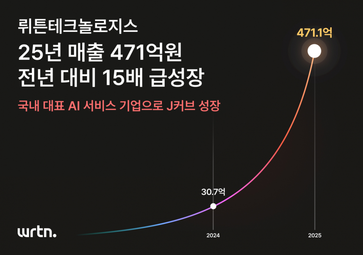 AI(인공지능) 서비스 플랫폼 기업 뤼튼테크놀로지스(뤼튼)가 지난해 매출액이 471억원으로 전년도 약 30억원과 비교해 15배에 달하는 성장을 이뤘다고 14일 밝혔다.