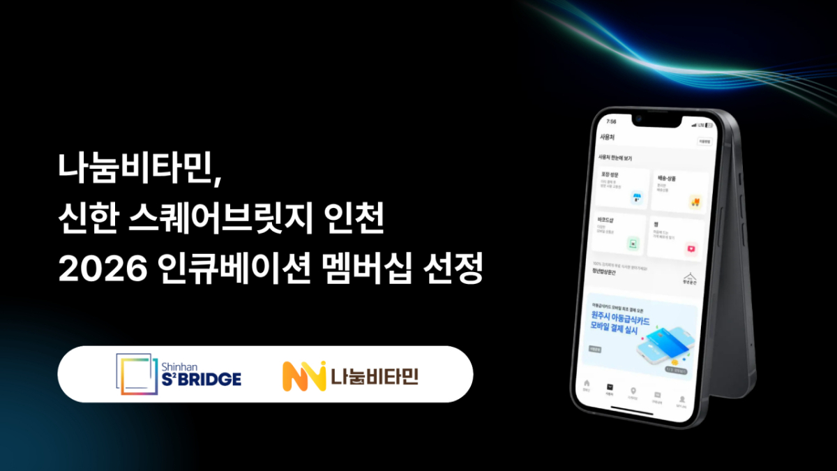 돌봄경제 스타트업 나눔비타민이 신한금융그룹의 스타트업 육성 플랫폼인 '신한 스퀘어브릿지 인천' 2026 인큐베이션 멤버십 프로그램에 최종 선정됐다고 16일 밝혔다.