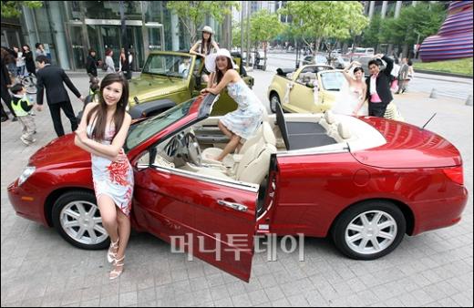 크라이슬러 코리아가 오는 5월7일부터 전국 12개 도시에서 고객들을 직접 찾아가는 시승행사를 앞두고 29일 오전 서울 광화문 일민미술관 앞에서 세브링 컨버터블, PT크루저 카브리오, 짚 랭글러 루비콘 등 컨버터블 3종 차량을 선보이고 있다. 독자들의 PICK! 5년 전 사라진 걸그룹 리더 충격 폭로…"빚쟁이라며 인터넷방송 시켜" '40억 건물주' 이해인 "대출만 32억…이자 계산하다 못 자" 토로 친구 아내와 바람난 남편...월 300만원 받고 방 잡아준 친구 배우 정은우, 돌연 사망 비보…하루 전엔 SNS에 장국영 사진