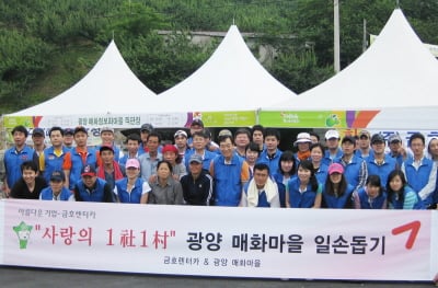 금호렌터카는 5일 전남 광양 매화마을을 방문해 1사1촌 봉사활동 펼쳤다. 이번 봉사활동에는 이삼섭 사장을 비롯한 임직원 60여 명이 참가해, 매실 수확과 포장작업 등 농번기 일손을 거들었다. 아울러 금호렌터카는 매화마을 소재 광양 다압 중학교에 도서 및 자료검색용 노트북을 기증했다. 독자들의 PICK! '외도' 아내, 25층 매달려 협박…남편, 결국 상간남 만남 허락 "확 달라진 얼굴"...김지민 퉁퉁 붓고 멍 잔뜩 '깜짝', 무슨일? "성관계 해주면…" 성폭행 당한 여성에 경찰이 한 말 장혁 논현동 빌딩 '286억'…75억 대출받아 11년 만에 130억↑