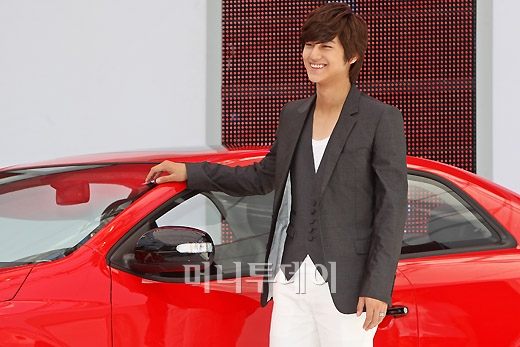 기아자동차가 11일 오전 서울 삼성동 코엑스 야외광장에서 '포르테 쿱(FORTE KOUP)' 신차발표회를 갖고 있다. 홍보대사인 탤런트 김범이 1호차 주인공으로 선정되어 포즈를 취하고 있다.