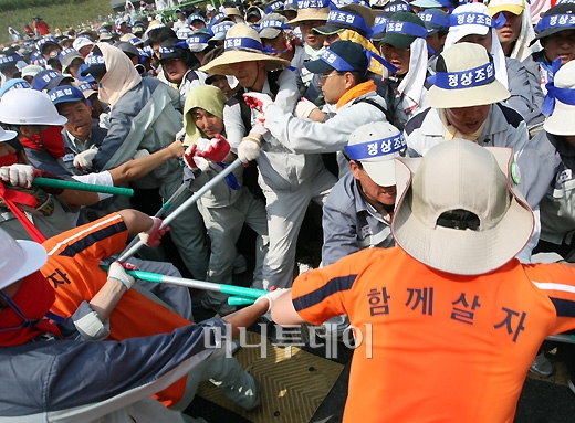 [사진]쌍용차, 쇠파이프와 인의 장벽