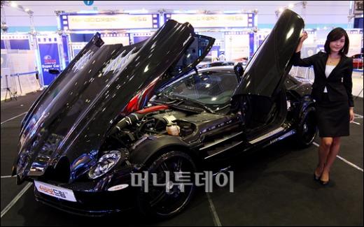 국내 최대 자동차 애프터마켓 및 튜닝 전시회인 '2009 서울오토살롱'이 2일 오전 서울 삼성동 코엑스에서 개막하고 있다. 사진은 벤츠 모델 중 가장 아름다운 모델로 손꼽히는 SLK55AMG. 시가 약 11억원.