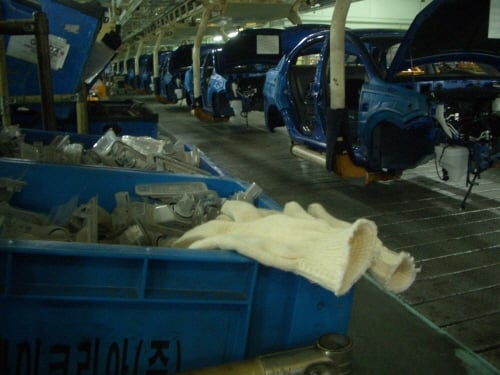 사진은 기아차 소하리공장 프라이드 라인이 파업으로 멈춰져 있는 모습.