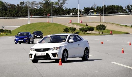 28일 기아차 화성공장 주행시험장에서 만난 포르테GDI 3총사(세단·쿱·해치백)의 첫 인상은 당당했다. 가장 눈에 띄는 차는 단연 라인업에 새로 합류한 해치백(트렁크와 실내가 분리되지 않은차)이다. 이로써 포르테 GDI는 국내 최초로 바디타입별 풀 라인업을 구축한 차가 됐다.