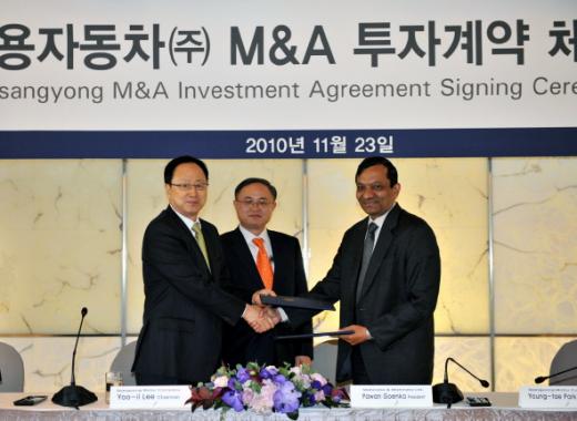 인도의 마힌드라&마힌드라 그룹이쌍용자동차(3,525원 ▲145 +4.29%)를 5225억원에 인수한다. 이에 따라 2009년 2월 법정관리가 시작된 이후 1년 9개월여 만에 쌍용차는 완전 정상화될 전망이다.