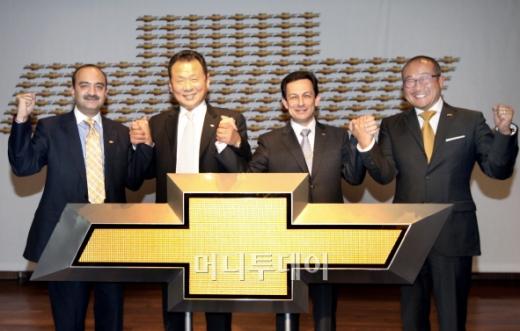 GM대우는 쉐보레 브랜드 도입과 함께 3월 스포츠카 '카마로'와 소형차 '아베오', 다목적차 '올란도' 등 총 8종의 신차를 출시하며 내수 점유율 두 자릿수를 달성한다는 목표다.