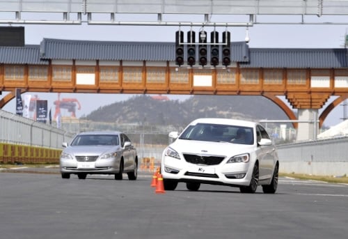 기아차가 그 해답을 내놨다. 기아차가 22일 전남 영암 포뮬러원(F1) 경기장에서 두 모델을 직접 비교 시승해 볼 수 있는 기회를 마련했다. 직분사(GDi) 엔진과 첨단 편의사양으로 업그레이드된 K7은 어떤 동급 모델과 비교해도 뒤지지 않는다는 자신감의 표현인 셈이다.