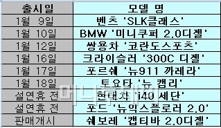 i40세단·코란도스포츠, 벤츠 SLK·미니 디젤·300C 디젤·캠리·뉴 911·뉴 익스플로러 등