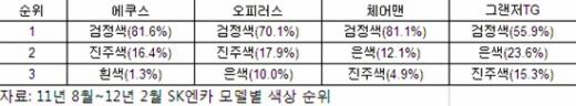최현석 SK엔카 영업총괄본부 이사는 "무채색 계열의 대형차를 선호하는 경향이 뚜렷해 색상에 따라 최소 50만~최대 100만원 이상까지 시세 차이가 나기도 한다"고 말했다.
