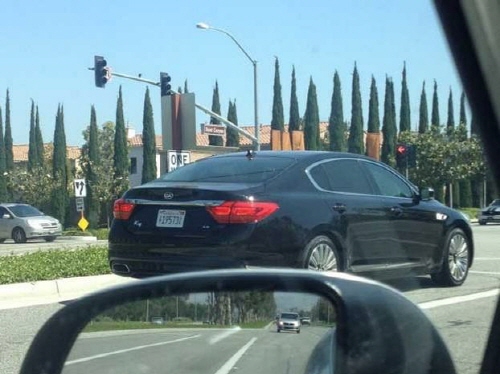 사진은 K9의 우측 후방에서 촬영됐으며 캘리포니아 자동차 번호판을 달고 있다. 번호판 위에는 미국 자동차회사에 등록됐다는 의미의 'DST'가 찍혀있다.