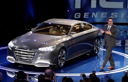 현대자동차(674,000원 ▲65,000 +10.67%)는 14일(현지시간) 미국 디트로이트 코보 센터에서 열린 '2013 북미 국제 오토쇼(NAIAS)'에서 올 연말 출시예정인 제네시스후속의 디자인과 성능을 엿볼 수 있는 콘셉트카 ‘HCD-14’를 세계최초로 공개했다.