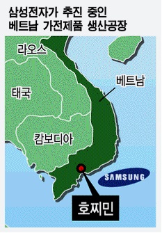 한편 삼성전자는 2008년 베트남 박닌성 옌퐁공단에 베트남법인(SEV)을 만들어 연간 1억2000만대 휴대폰을 생산하고 있다. 2015년 가동을 목표로 베트남 타이응우옌성 옌빈공단에 휴대폰 2공장도 건설 중이다.