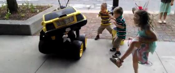 영상 속 인간 '범블비'는 두 다리로 서서 아이들과 하이파이브를 하는가하면 자동차로 변신해 주위를 맴돈다.