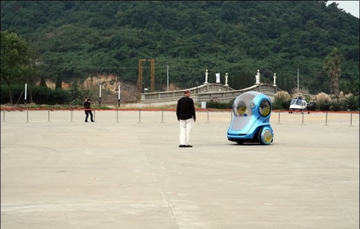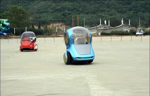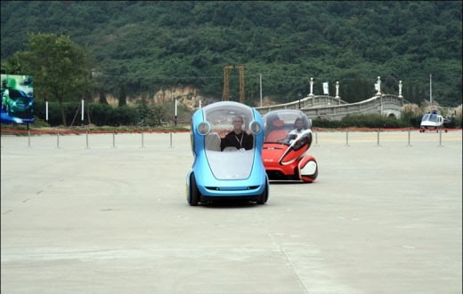 상해에서 좀 떨어진 고급 휴양 리조트의 공터에 2대의 EN-V가 준비되어 있었습니다. 차량에 시동을 걸면, 마치 ‘세그웨이’처럼 두 바퀴가 균형을 잡고 주행준비를 합니다.
