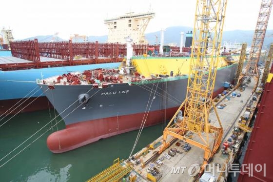 ◇LNG선 경쟁력 '세계 최고' = 옥포조선소에서 최근 가장 주목할 만한 고부가가치 상선은 LNG(액화천연가스) 운반선이다. 진수(물을 넣어 선박을 띄움)를 마친 LNG 운반선 위로 올라갔다. LNG선은 천연가스를 영하 163℃로 액화시킨 상태로 운송하는 선박이다. LNG가 임계온도 영하 163℃ 이상으로 올라가면 기체로 바뀌는데 기체가 액체보다 600배나 볼륨이 크므로 액화된 상태로 운반시키는 것이 가장 좋다.