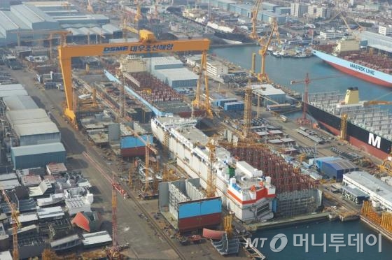 부산 김해공항에 내려 거가대교를 통과해 차로 1시간 가량 이동하면 거대한 크레인과 선박 수십척이 한눈에 들어온다. 경남 거제시 옥포만에 위치한대우조선해양(128,000원 ▲8,700 +7.29%)옥포조선소. 정문을 통과하자 '신뢰', '열정'이라는 대우조선해양의 슬로건과 함께 잘 조경된 나무들과 잔디밭이 보인다.