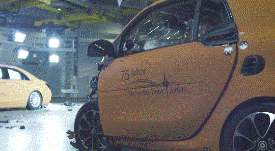 지난 17일 다임러 AG가 유튜브에 올린 영상에 따르면 메르세데스-벤츠의 대형 세단 S-클래스 차량과 최근 메르세데스-벤츠 계열의 프리미엄 미니카 브랜드 스마트가 공개한 2015년형 '포투(ForTwo)'가 시속 50km의 속도로 충돌하는 오버랩 테스트가 진행됐다.