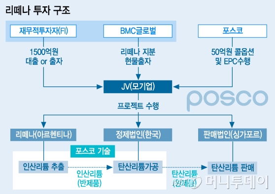 포스코와 FI는 리떼아의 모기업이 될 조인트벤처(JV)에 투자할 예정이다. 이와 동시에 현재 리떼아 지분 83.7%를 보유한 최대주주 BMC글로벌이 리떼아 지분을 조인트벤처에 현물로 출자한다.