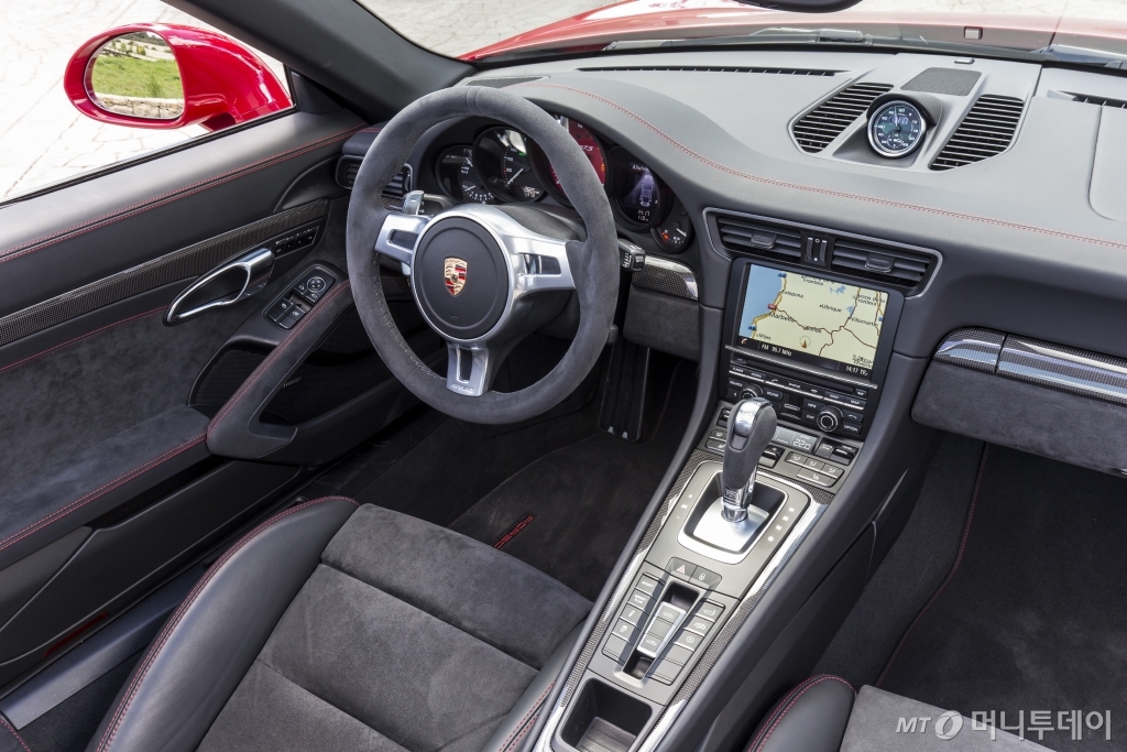 그 안에 911 타르가 4 GTS를 비롯해 911 카레라, 카이맨, 박스터, 파나메라와 카이엔 GTS의 전 라인업이 줄지어 있었다. 검은 색 휠과 머플러, 여느 포르쉐와 달리 길게 각진 헤드램프 안쪽 디자인이 GTS 라인 임을 드러낸다. 레이싱카나 다름없다는 911 GT3 보다는 편하고 911 S보다는 출력이나 옵션을 더 갖추고 있다.