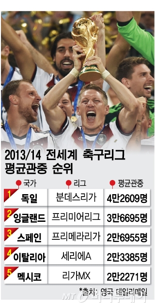 한국프로축구연맹 관계자는 "저렴한 티켓가격정책으로 누구나 경기를 볼 수 있게 하자는 것이 독일축구의 특징"이라며 "유명 축구팀의 시즌 티켓은 확보경쟁이 치열해 자녀들에게 물려줄 정도"라고 설명했다.