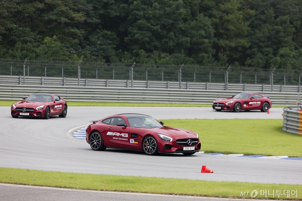 '쿠르르르릉 쿠쿠쿠' 자동차의 머플러에서 뿜어 나오는 소리가 마치 천둥소리처럼 하늘을 갈랐다. 지난 19일 경기 용인의 에버랜드 스피드웨이에서 메르세데스-벤츠가 개최한 'AGM 서킷데이' 행사에서는 최대 510마력을 뿜어내는 4000cc 8기통 바이터보 엔진의 메르세데스-AMG GT S 에디션 1을 포함해 벤츠의 고성능 모델 13종 30여대가 등장했다. 이들이 일제히 주행을 시작하자 경주장은 굉음으로 가득 찼다.