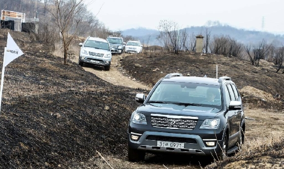 이곳에서 경기 연천군 소재 임진강 자갈뜰을 오가는 왕복 130km가량이 시승 코스였다. 자갈뜰 인근에는 오프로드 주행성능을 확인하기 위한 비포장 험로 2km 코스도 마련됐다. 시승차량은 최고급 트림에 상시 4륜시스템이 적용되고 안전·편의사양이 추가된 5000만원가량의 모델이었다.