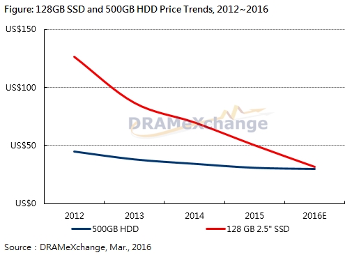이같은 전망은 이미 '가시권' 내로 들어왔다. D램익스체인지 분석에 따르면 128기가바이트(GB) SSD와 500기가바이트(GB) HDD의 가격 차이는 올해 중 3달러 이하로 좁혀질 전망이다. 256GB SSD와 1테라바이트(TB) HDD의 가격 차이는 올해 연말 전까지 7달러 이하가 될 것으로 예상된다.