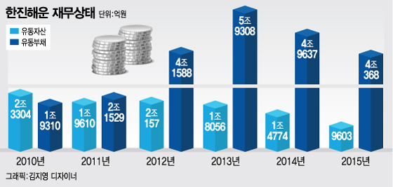위험신호는 2011년부터다. 이때부터 1년 내에 갚아야 할 부채인 유동부채와 1년 이내에 현금화가 가능한 유동자산의 규모가 역전됐다.