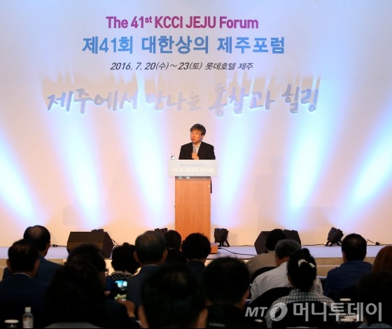 장하준 영국 케임브리지대 교수는 23일 서귀포 제주롯데호텔에서 열린 '제41회 대한상이 제주포럼'에 특별 강연자로 참석해 '한국기업의 도전과 과제'라는 강연 후 기자간담회를 갖고 이같이 말했다.