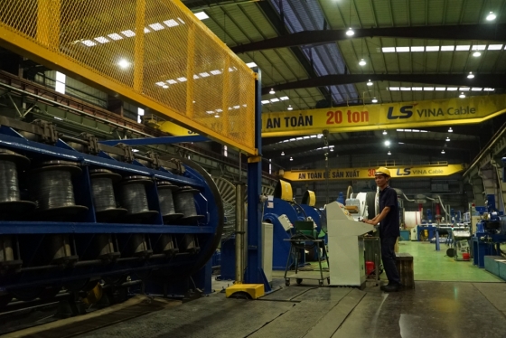 이곳에는 LS전선이 지난 1996년 설립한 베트남 1위 전선 기업 LS-VINA(LS-VINA Cable & System)의 생산 라인이 있다. 6만 제곱미터(㎡, 약 1만8000평) 규모의 부지에 자리 잡은 공장은 '20년의 연륜'이 느껴졌다. 전력케이블을 생산하는 이 공장의 지난해 매출은 3억2000만 달러, 수출 비중은 23%다.