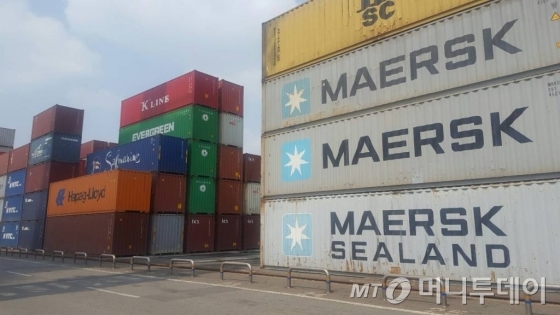 40피트 컨테이너의 절반 크기인 20피트 컨테이너는 동시에 2개를 들거나 내렸다. 현대차 포터 트럭이 '1톤 트럭'이라는 점을 고려하면 80톤은 포터 80대를 동시에 들어올리는 무게인 셈이다. 거대한 규모에 입이 벌어졌지만, 한진해운 배가 아니라는 점이 아쉬웠다. 현대상선은 부산신항만에서 4부두를 주로 사용할 예정이라 찾아보기가 쉽지 않았다. 모르텐 머스크 외에 중국 시노트랜스 등의 소형 컨테이너선 7척도 선적 및 하역 작업 중이어서 총 길이 1.1㎞의 안벽(배가 접안하는 곳)은 촘촘하게 채워져 있었다. 하역 작업을 마친 소형 컨테이너선박이 정오에 출항하자 뒤에 대기중이던 또 다른 소형 선박이 접안을 시도했다.