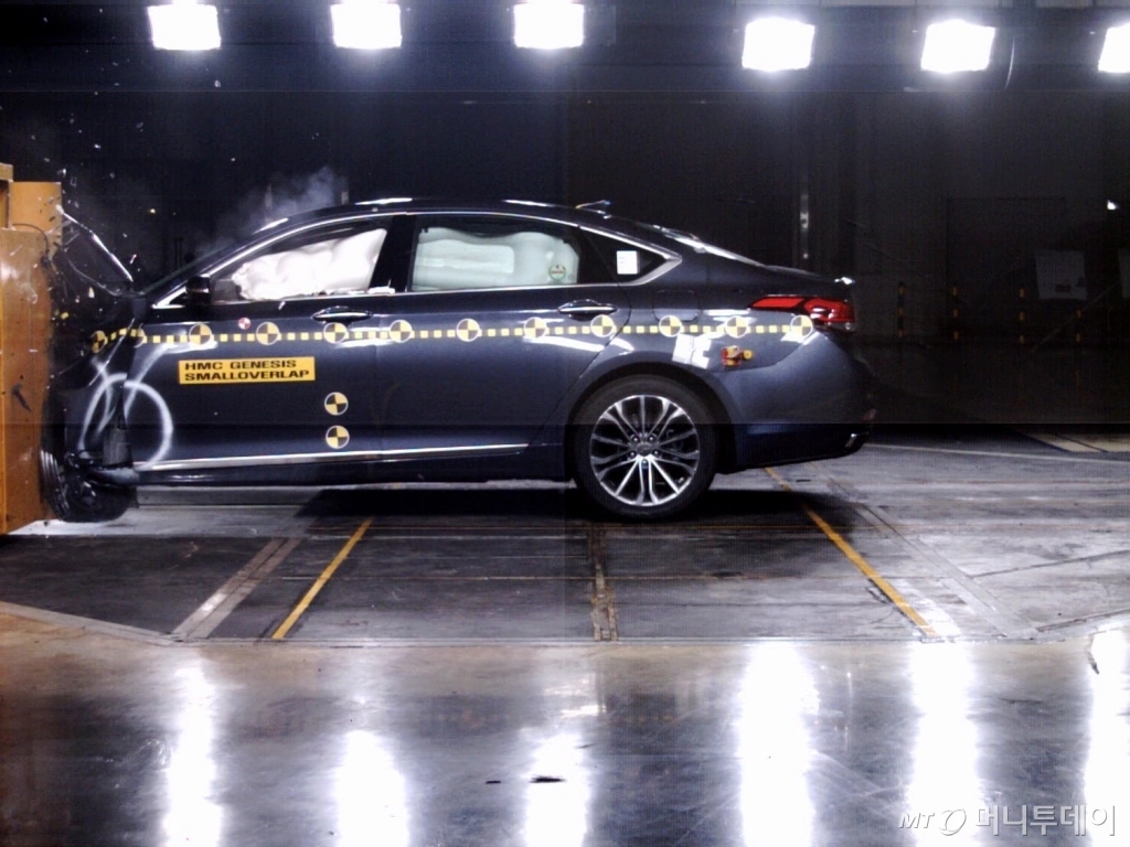특히 제네시스 DH는 '스몰오버랩(small overlap) 테스트'에서 만점을 받았다. 스몰 오버랩 테스트는 차량을 40마일(64㎞) 속도로 달려 앞 운전석 부분 25%만을 5피트(1.5m) 벽에 부딪혀 운전자의 안전성을 보는 평가다. 충격을 흡수하는 엔진이나 차체를 거치지 않고 곧장 앞바퀴를 지나 운전석으로 충격을 가하기 때문에 '가장 가혹한' 테스트로 불린다.
