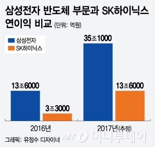 삼성전자 반도체사업 부문은 지난해 잠정 영업이익이 35조1000억원으로 집계, 전년 대비 158.1% 증가할 것으로 추정된다. SK하이닉스도 지난해 영업이익이 전년 대비 312.1% 늘어난 13조6000억원 수준이 될 것이란 기대다. 두 회사는 이 달 말 구체적인 실적을 공시한다.