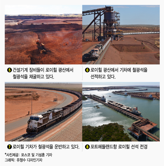 완성된 철광석 제품은 로이힐 소유의 334㎞짜리 철도를 통해 호주 최대 항구(포트 헤들랜드)까지 이동된다. 열차 속도, 배 출항 시간 등도 철저하게 효율성을 따진다. 배리 CEO는 "로이힐 광산은 생산능력을 키우며 광산과 철도를 포함한 설비의 현대화에 투자했다"며 "다른 대형 광산과 비교해 가장 선진화된 시스템"이라고 강조했다.