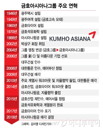 그룹 인수전에 동원되면서 2006년 2조원 수준이었던 아시아나 차입금 규모는 2008년 4조원을 넘어섰다. 금융위기가 터지자 그룹은 인수한 기업을 소화하지 못하고 쓰려졌다. 2009년 금호산업, 금호타이어 등 주요계열사가 워크아웃에 들어갔고, 아시아나는 채권단과 자율협약을 맺었다.
