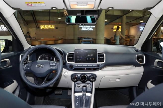 우선 디자인이 눈에 들어왔다. 네모 모양의 주간주행등은 베뉴의 고유함으로 다가온다. 전체적으로 작지만 다부지다는 느낌을 받는다. 쌍용차 티볼리(1590mm)나 형님 격인 코나(1550mm)와 전고(높이·1565~1585mm)가 비슷하다. 차문을 열고 좌석에 앉아보니 생각보다 공간도 넉넉했다. 실용성을 강조한 실내 디자인도 군더더기가 없어 보였다. 글러브 박스 위쪽에 위치한 작은 수납 공간은 스마트폰 등 간단한 짐을 올려둘 수 있다. 내부 인테리어의 배치가 잘 되어있고 정교하다.