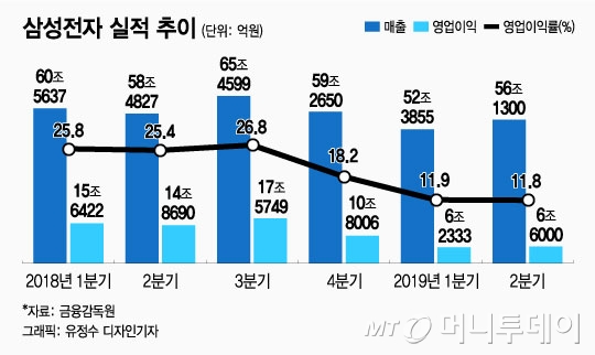 한편 삼성전자는 올 2분기 연결재무제표 기준 영업이익이 6조6000억원으로 지난해 같은 기간보다 55.63% 줄었다고 이날 공시했다. 이 기간 매출은 56조1300억원으로 4.03% 줄었다.