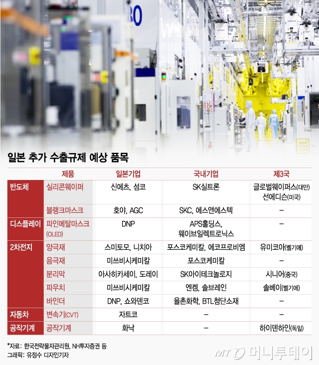대체 어려운 품목 추가 규제 땐 직격탄…日 화이트리스트 제외 "언제든 한국 칠 '통상무기' 장착한 셈"