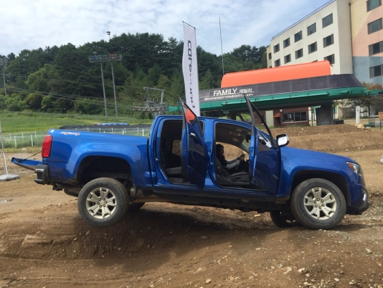 지난 27일 강원도 횡성군 웰리힐리파크. 한국GM이 쉐보레 콜로라도(Colorado) 시승을 위해 슬로프와 오프로드(비포장도로), 카라반 견인 등 3가지 코스 등을 마련했다. 전날 내린 비로 시승 코스는 온통 진흙밭이었다. 여기저기에 진흙이 가득하고 세단이었다면 분명 바퀴가 진흙밭에 잠겨 빠져나오기가 쉽지 않았을 것이다.