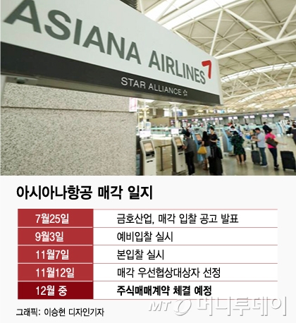 다만 금호산업으로서는 '건질 돈'이 적다. 최근 주가 기준으로 구주 가격이 3700억원 가량인 것을 고려하면, 경영권 프리미엄을 거의 받지 못하는 셈이다. 핵심 계열사인 아시아나항공 매각대금을 그룹 재건의 종잣돈으로 삼아야 할 금호산업으로서는 만족스럽지 못한 상황이다.