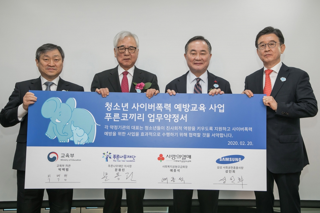 성인희 삼성 사회공헌업무총괄 사장은 "그룹의 자원과 역량을 모아 청소년 사이버폭력 문제 해결에 기여할 것"이라며 "앞으로 다양한 사회공헌 활동을 펼치겠다"고 말했다.
