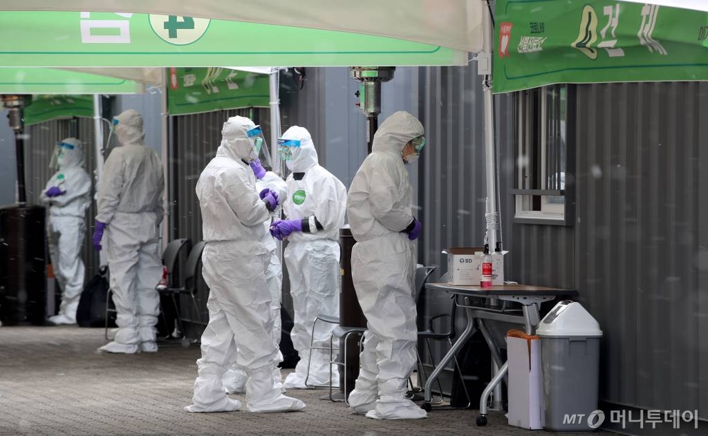![[서울=뉴시스] 조수정 기자 = 4일 오후 서울 송파구 잠실 주경기장에 설치된 '드라이브 스루(Drive Through) 신종 코로나바이러스 감염증(코로나19) 선별진료소'에서 방호복을 입은 의료진이 흩날리는 눈발을 맞고 있다. 서울시는 강서구 이대서울병원, 서초구 옛 소방학교, 은평구 은평병원, 잠실주경기장 주차장에서 드라이브 스루 선별진료소를 운영한다. 2020.03.04. chocrystal@newsis.com](https://thumb.mt.co.kr/cdn-cgi/image/f=avif/21/2020/03/2020030816092216744_1.jpg)
