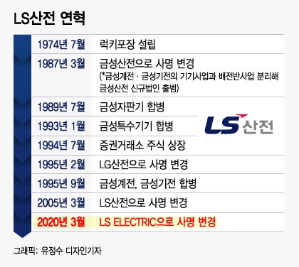 1974년 설립한 럭키포장이 모태인 LS산전은 1987년 3월 '금성산전'으로 사명을 바꾼 뒤 '산전(산업용 전기)'이라는 이름을 33년째 유지해왔다.
